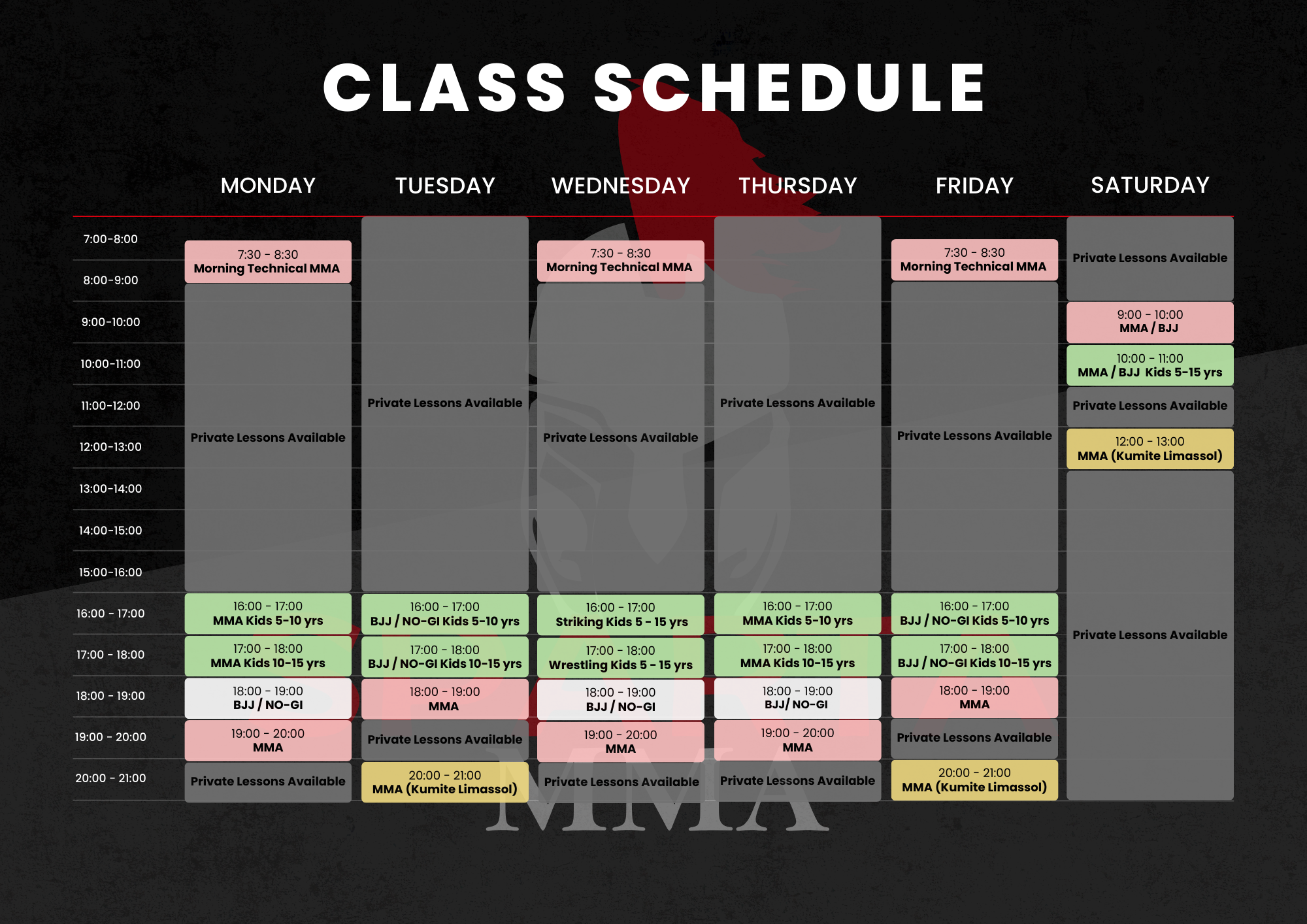 🥋 SPARTA MMA PAREKLISIA - TIME TABLE